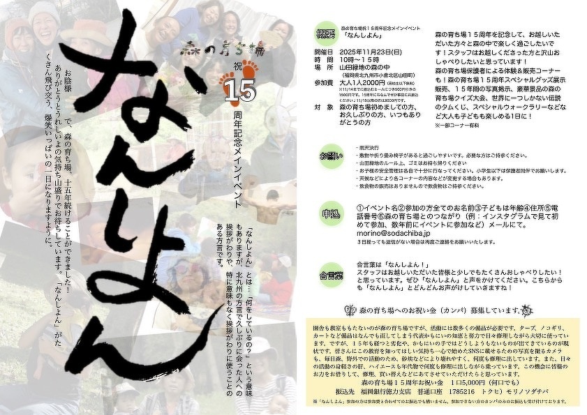 ※「なんしよん」参加の方は参加費と合わせてのお振込でも構いません。